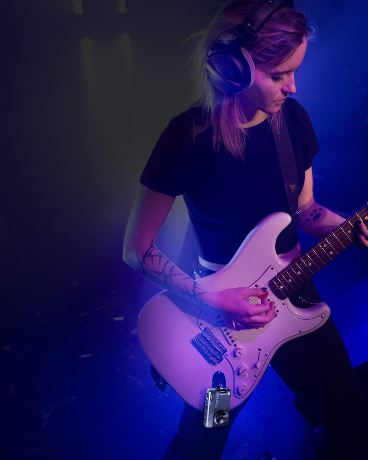 Blackstar Polar GO pocket studio mounted on a stand with a hand editing an audio interface app on a phone